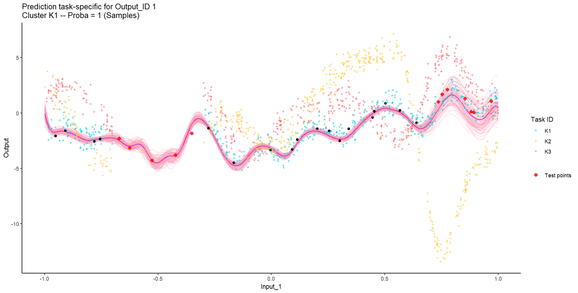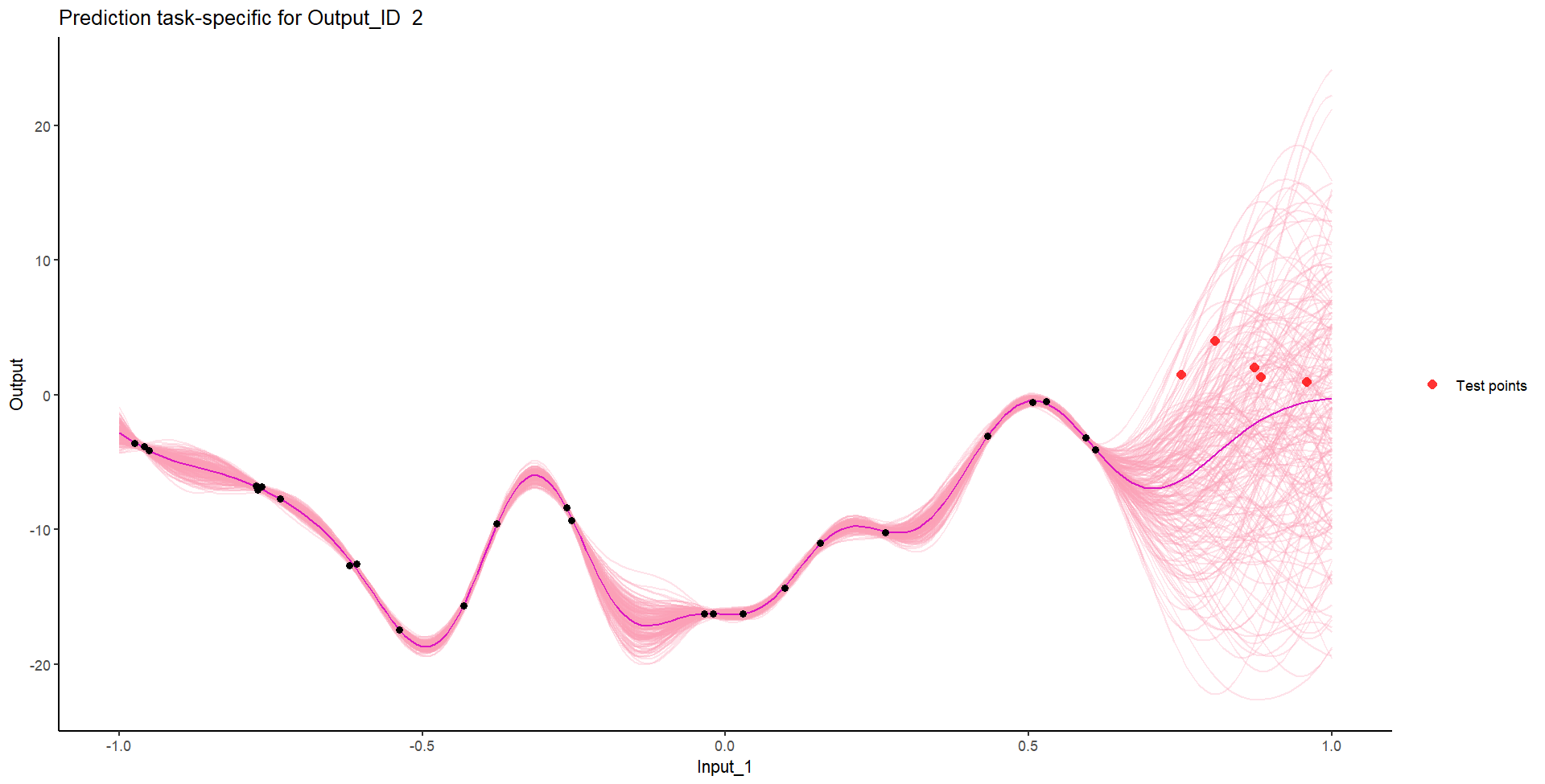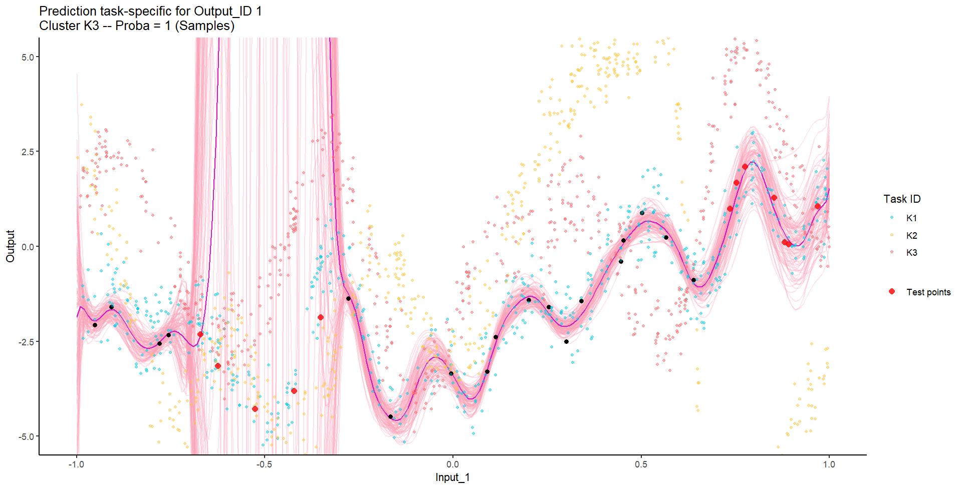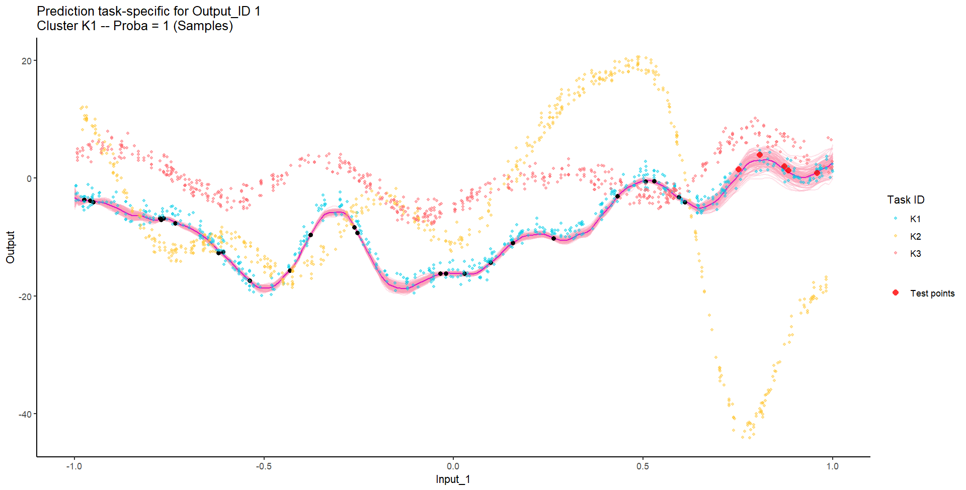 Let’s remove [-0.7, -0.3] of 2nd Output, and [0.7, 1] of both Outputs for the testing Task, and try to predict those testing points (and recover the underlying clusters).