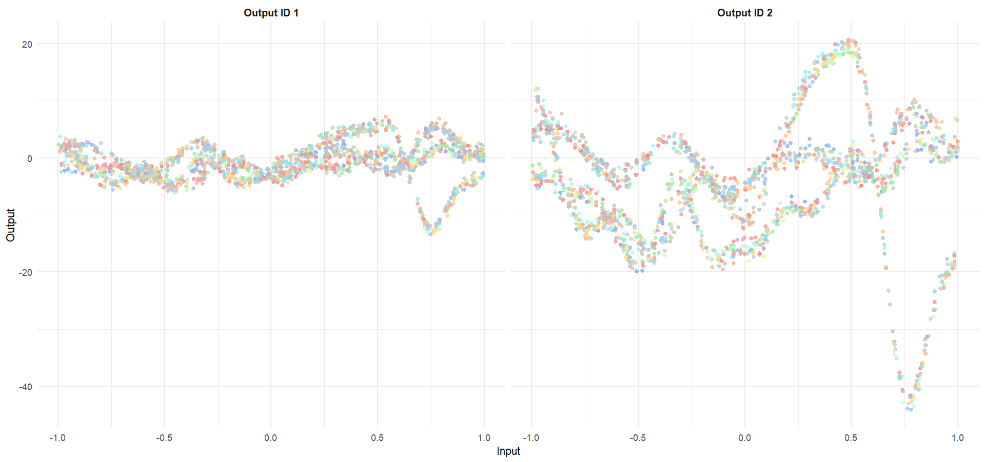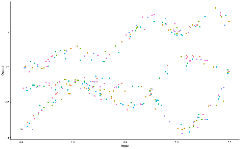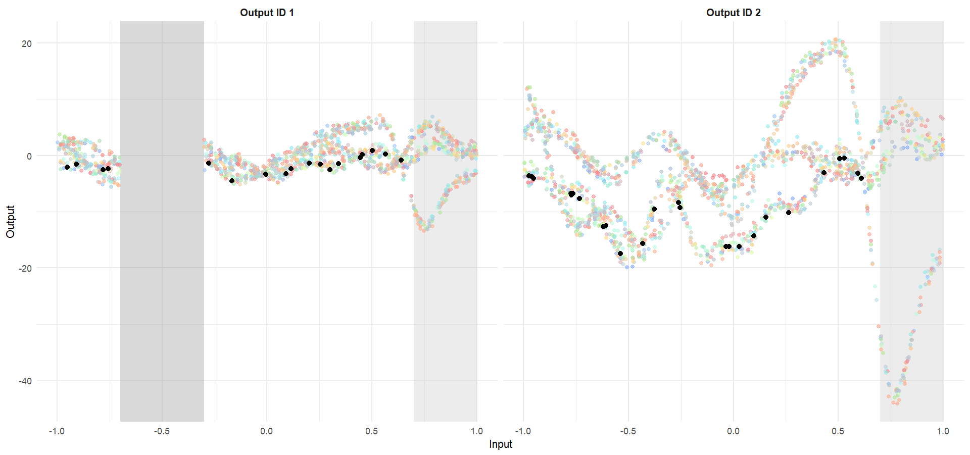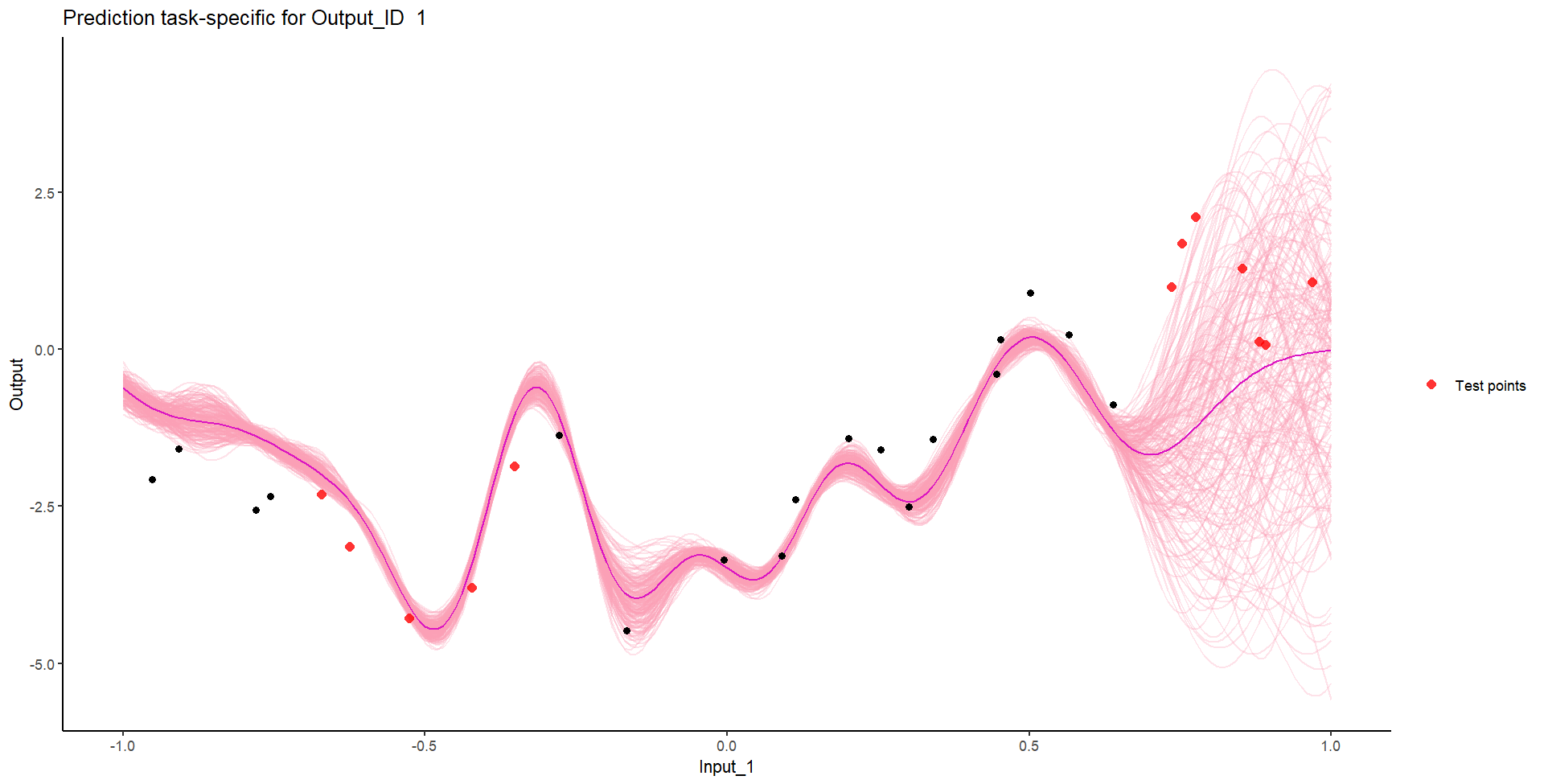 Let’s remove [-0.7, -0.3] of 2nd Output, and [0.7, 1] of both Outputs for the testing Task, and try to predict those testing points (and recover the underlying clusters).