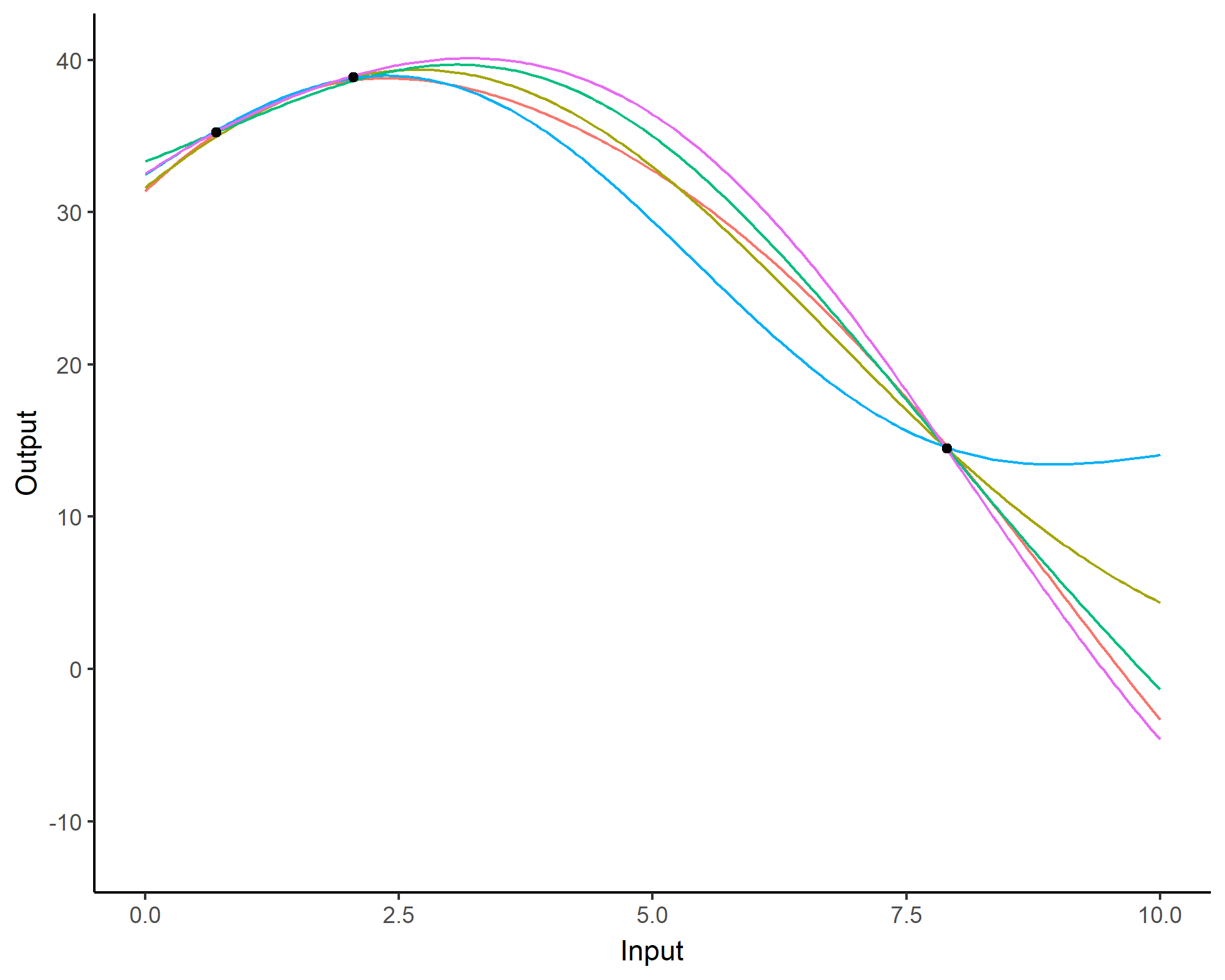 No restrictions on \(\color{orange}{f}\) but a prior distribution on a functional space: \(\color{orange}{f} \sim \mathcal{GP}(m(\cdot),C(\cdot,\cdot))\)