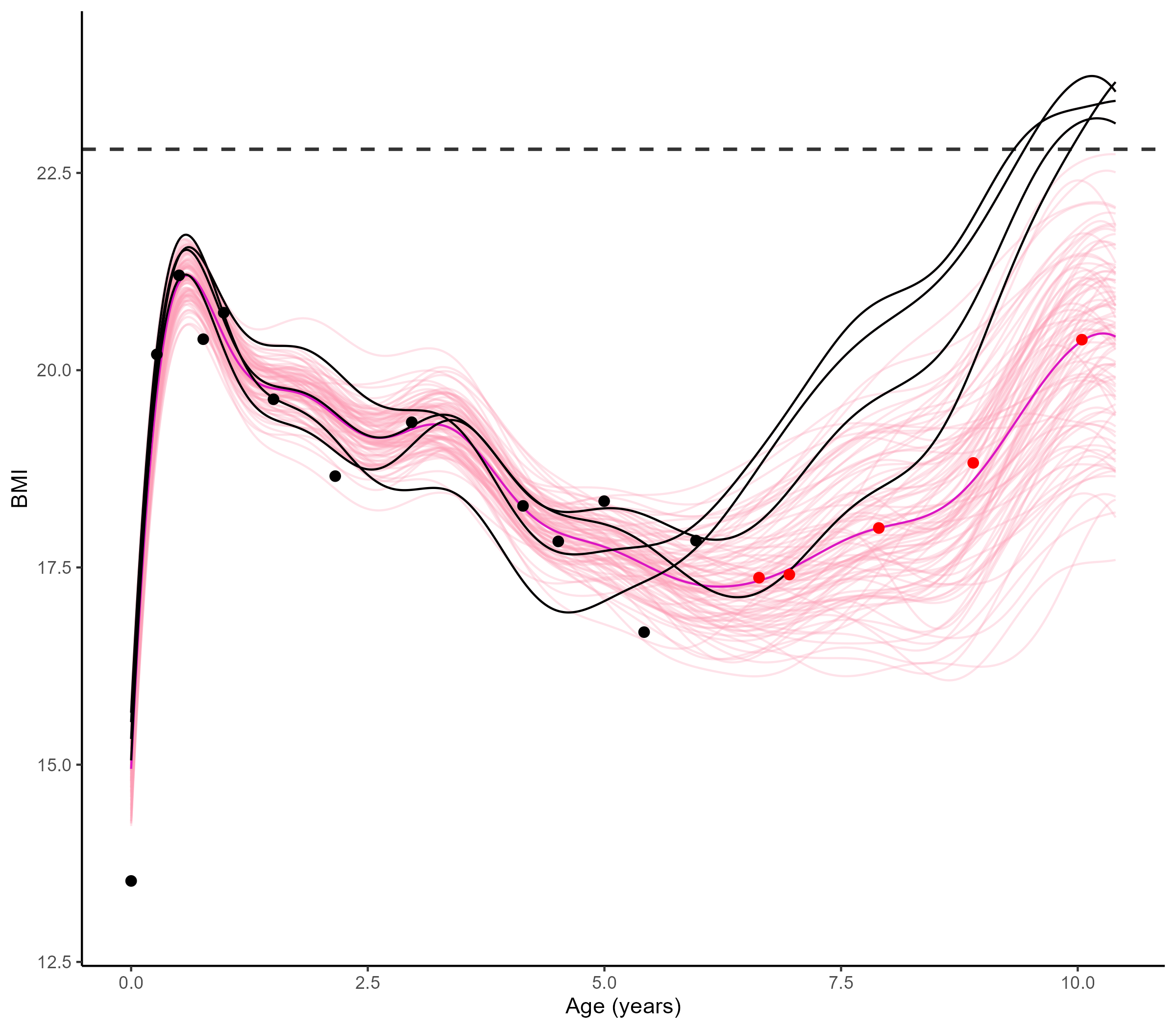Uncertainty quantification provides valuable information to practitioners to make decisions based on probabilistic statements, like the risk of overweight at 10 years.