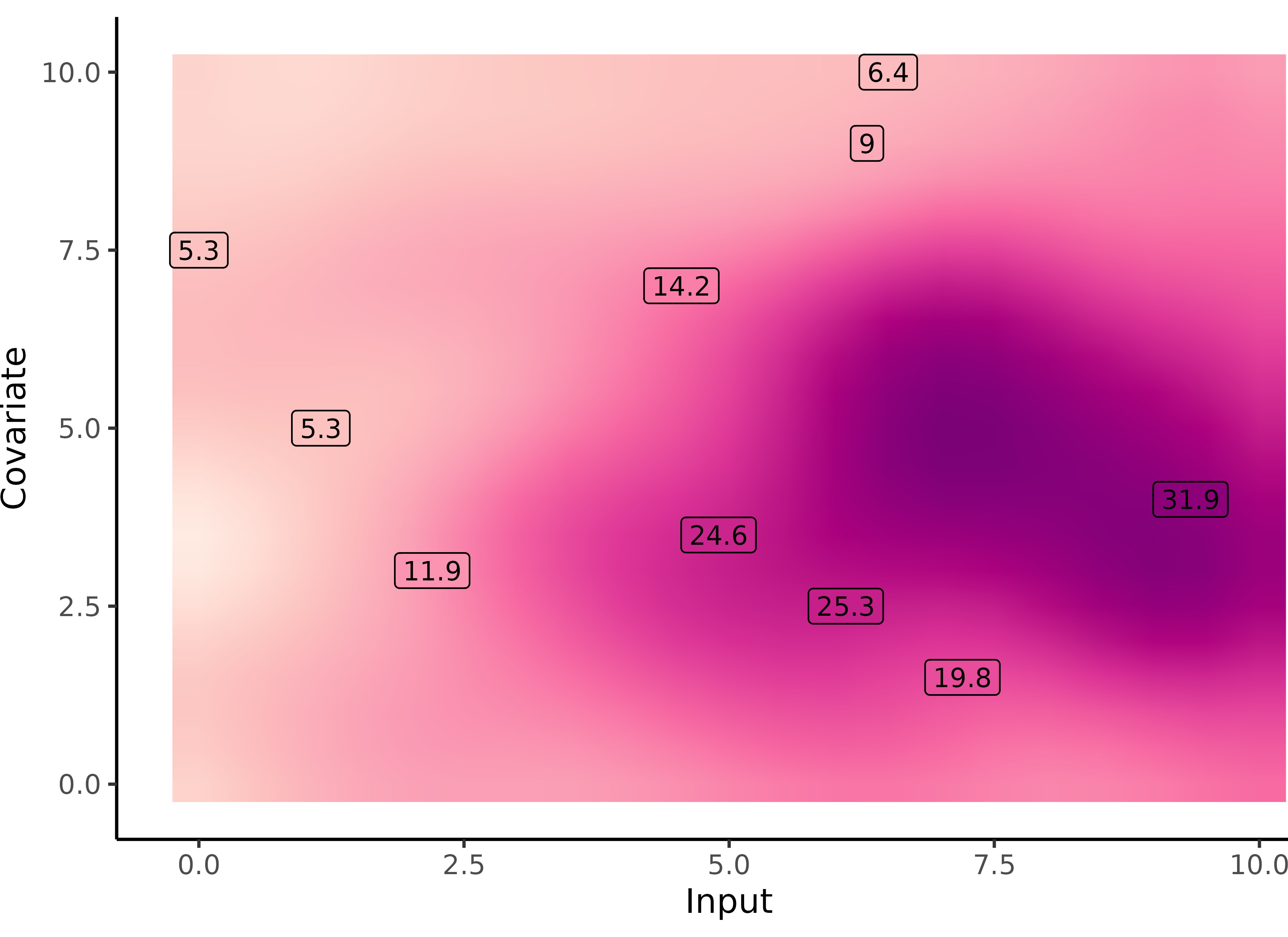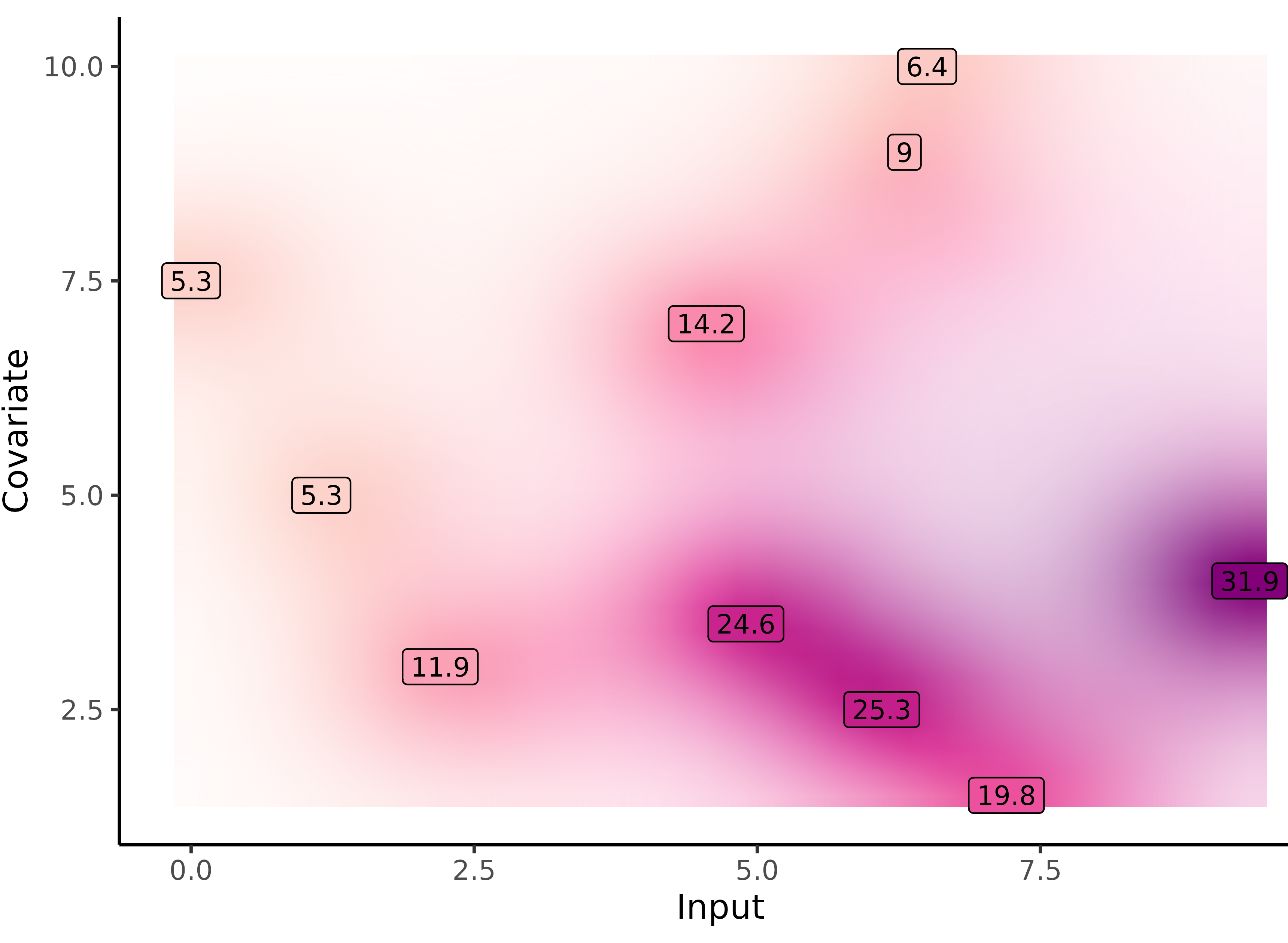 \[p(y_*(\color{purple}{\mathbf{x}^{p}}) \mid y_*(\color{grey}{\mathbf{x}_{*}}), \textbf{y}) = \mathcal{N} \Big( y_*(\color{purple}{\mathbf{x}^{p}}); \ \hat{\mu}_{*}(\color{purple}{\mathbf{x}^{p}}) , \hat{\Gamma}_{\color{purple}{pp}} \Big)\]