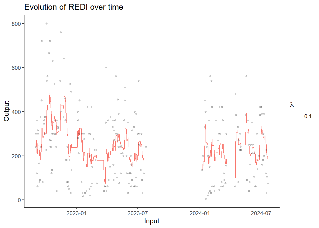 Utiliser la fonction wrapprer redi() pour calculer le REDI pour différentes coefficients de décroissance \(\lambda\) et afficher les résultats.