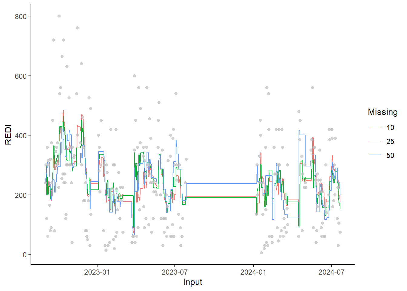 geom_line(aes(x = Input, y = REDI, col = Missing)) +