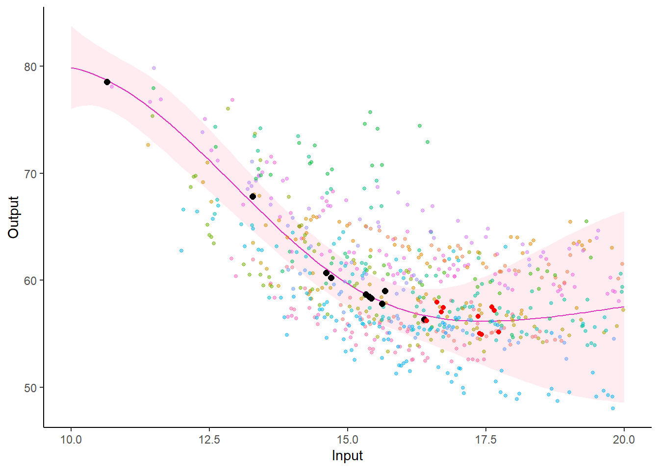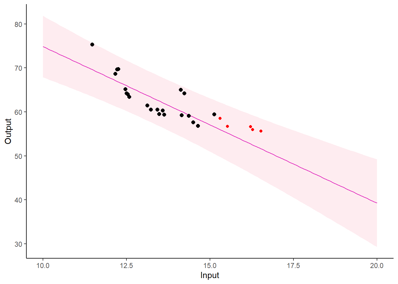 geom_point(data = db_workload, aes(x = Input, y = Output),