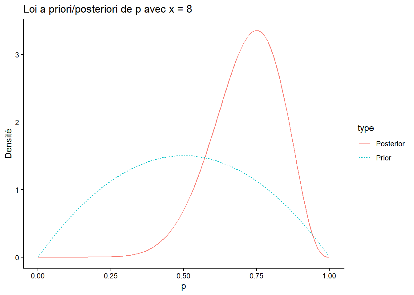 ggtitle(paste("Loi a priori/posteriori de p avec x =", x)) +